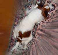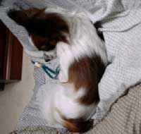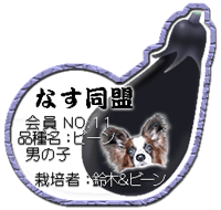 名前は、はやりの映画 「ミスター・ビーン」からとりました。 (決して、顔が似ているとか そういうのではありません・・・。 ̄m ̄ ふふ) 仕草がと〜ってもよく似ています。 デカパピなのですが、細いです・・・。 そして、胴が少々、長いです・・・。 と、いうわけで「細長なす種」です。 |