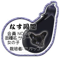 記念の会員No.050. サリーちゃん。 会員No.013.の 超大型長なす種 マリーちゃんの同居人。 とってもおしゃべりな女の子。 只今成長中♪ |