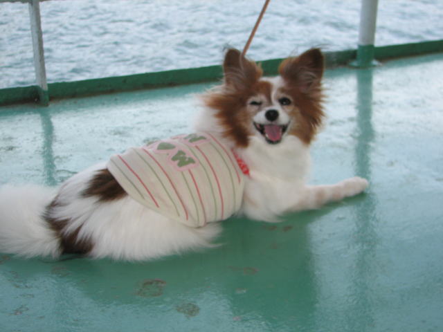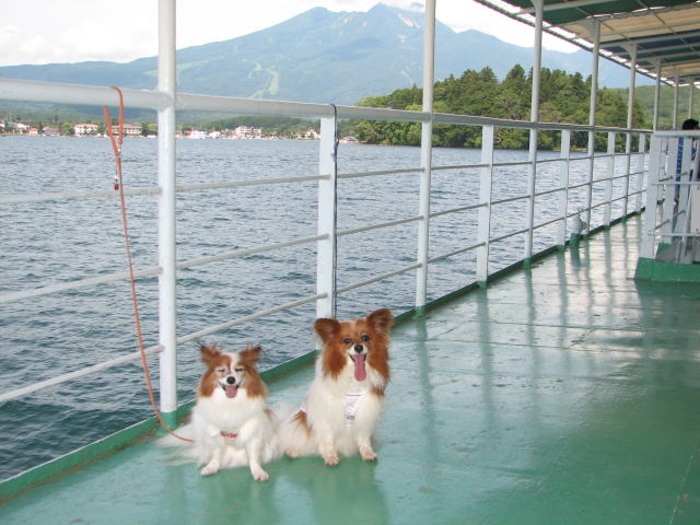 | またまた『TESS』&『海』の笑顔!! 『TESS』がホント嬉しそうだったねぇ。 野尻湖の湖上遊覧船にて・・・ |